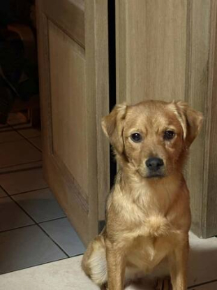 Née en novembre 2023 (date estimée approximative), elle sera de taille moyenne à l’âge adulte (environ entre 15 et 25 kg).