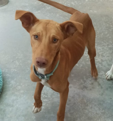Robert est un mâle croisé de Podenco né en Avril 2024 et arrivé au refuge en Avril 2025. Il pèse 13 kg et mesure 47 cm au garrot.
