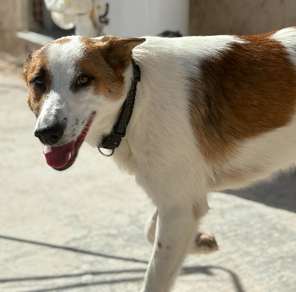 Carmelo est un mâle croisé né en Mai 2024 et arrivé au refuge en Juin 2025. Il pèse 20 kg et mesure 54 cm au garrot.