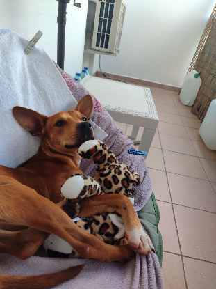 Trouvé près de la caserne de gendarmerie du Lamentin, Só a été découvert amaigri, avec un collier et une patte cassée.