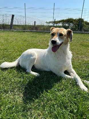 Cette adorable puce a été trouvée gestante sur un parking d’autoroute. Elle a été prise en charge et vit désormais avec plusieurs chiens. Malgré ce début de vie difficile, elle a immédiatement su trouver sa place parmi les autres chiens du groupe.