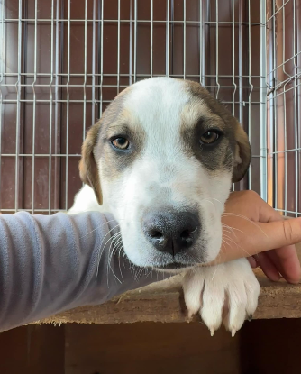 Finn a été retrouvé tout bébé, avec sa maman, sur le parking d’un bois isolé. Elle portait les marques d’une vie enchaînée… Sans doute abandonnée après avoir mis bas, ou pire, avant. Grâce à nos partenaires sur place, Finn a été mis en sécurité dès ses premiers jours, et grandit aujourd’hui entouré de bienveillance.