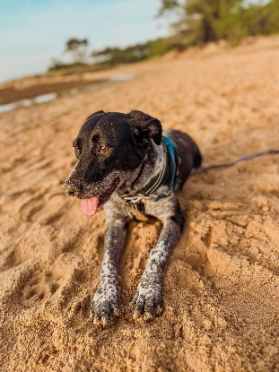 Pepsi adore les balades en forêt et courir sur la plage. La présence d'autres chiens la rassure et elle agit par imitation.