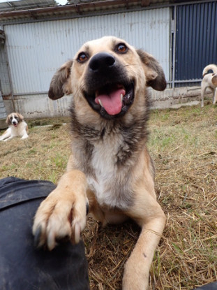 Né en avril 2022 (date estimée approximative), il est de taille moyenne (il pèse 21 kg à son arrivée mais est maigre).
