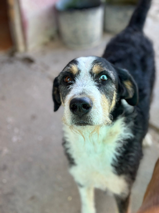 Clivia est une chienne croisée née en aout 2021 et entrée au refuge en octobre de la même année. Elle pèse 27kg et mesure 60cm. Elle a un œil bleu. Elle est positive à la leishmaniose mais est en bonne santé.