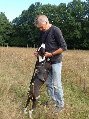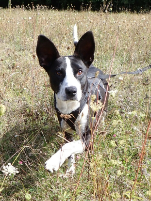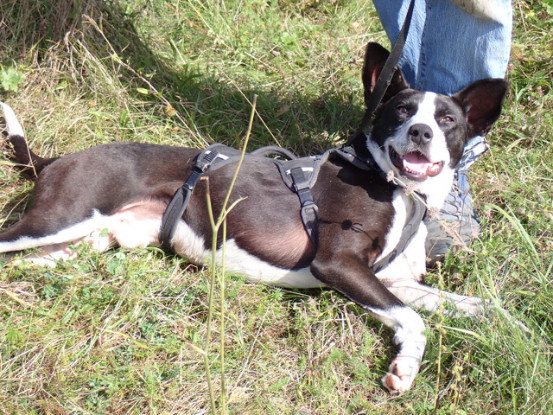 Caractère : très sociable : on peut pas faire plus sociable, il aime tout le monde il est toujours joyeux il ne tire pas en laisse...