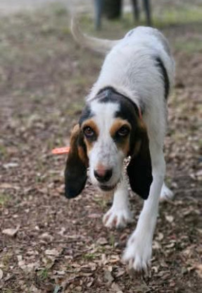 Orphée, adorable chienne type ariégeoise griffonnée trouvée gestante et errante dans un bois du Nord-Drôme.