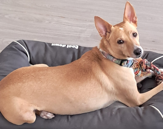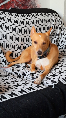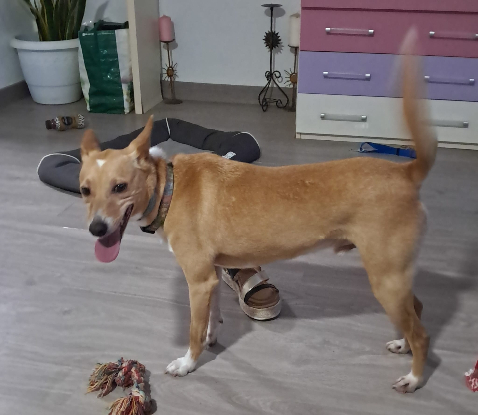 Pistacho est un podenco mâle de taille moyenne, au pelage marron clair et au regard profond qui en dit long sur son histoire. Né en février 2020, il pèse environ 12 kilos et mesure 47 centimètres au garrot. Castré, testé négatif à la leishmaniose et en bonne santé, il ne présente qu’une petite allergie cutanée saisonnière qui se gère facilement.