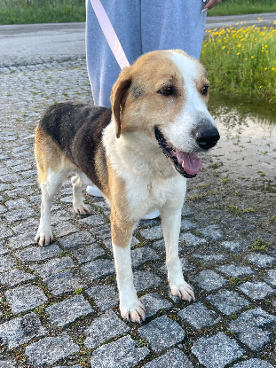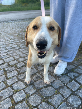 Je suis un chien très serein et calme. Je suis doux et on dit que je suis un croisé beagle (je ne sais pas ce que ça veut dire ni si c'est important pour que tu m'aimes davantage). J'ai entre 6 et 7 ans et je pèse environ 13 kg.