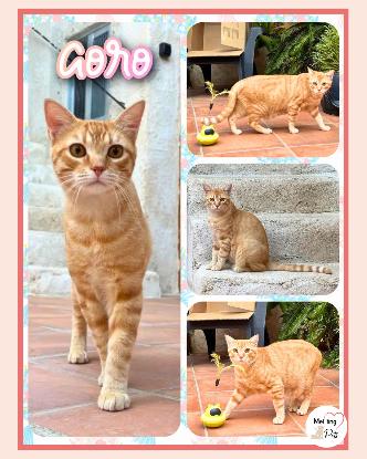 GORO est apparu sur le toit de la maison de l'une de nos bénévoles aux côtés de trois autres chats.