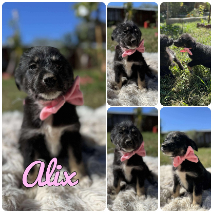 Alix est un chiot très mignon et sympathique. Actuellement elle se laisse manipuler sans souci par les humains. Elle se montre gentille avec les autres chiens