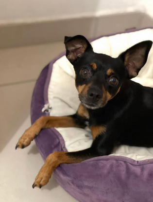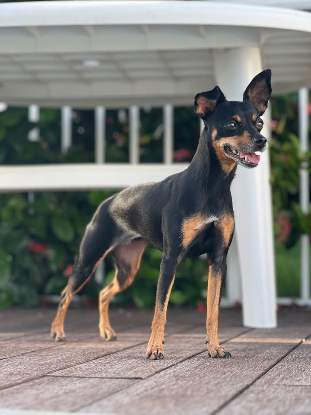 Tokyo est une femelle Pinscher noir et feu , de 3,4kg