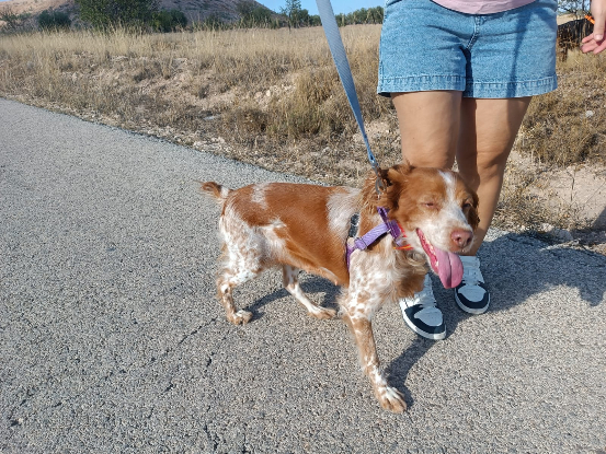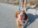 Estrella est une adorable chienne bretonne de taille moyenne, au pelage marron et blanc et au regard pétillant de vie. Née le 1er juillet 2016, elle mesure environ 48 centimètres et pèse 15 kilos. Derrière sa silhouette élégante et son allure vive se cache une chienne joyeuse, affectueuse et pleine d’énergie positive.