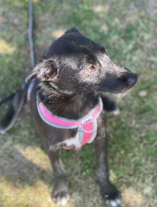 Glenda a été retrouvée chiot avec sa sœur dans un champ en Roumanie. Elle a eu la chance d’être adoptée en France lorsqu’elle avait 14 mois. Aujourd’hui, elle est de retour à l’adoption en raison de sa réactivité aux inconnus.