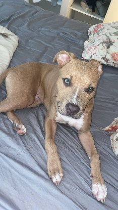 Pablo est un jeune chiot de 5 mois et demi type dogue. Donné par des particuliers, il a déjà fait 2 propriétaires différents malgré son jeune âge.