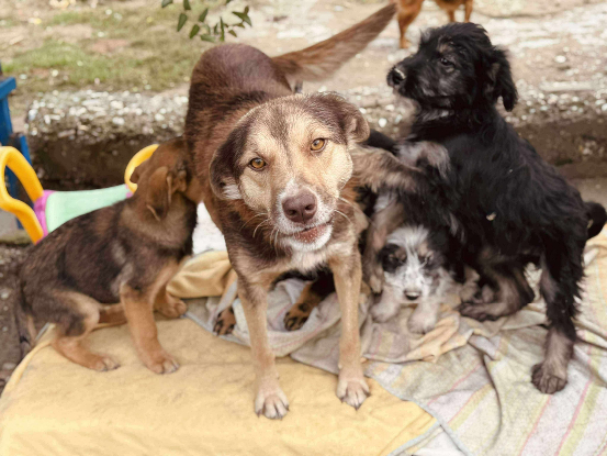 . Elle a été trouvée sur le bord de la route en Roumanie, accidentée de la patte arrière, avec ses 5 bébés, par Nicoleta.
