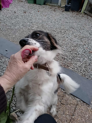 Mona est une superbe chienne venant de Roumanie qui a été adoptée en juin 2022 lorsqu’elle était chiot. Elle a aujourd’hui 3 ans et fait 16,5kg, elle est courte sur pattes