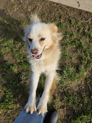 C'est un chien très affectueux et avenant, une fois qu'il est en confiance. Il aime se blottir dans les bras et s'allonger sur les genoux. Il adore se balader et jouer seul ou avec son humain. Il aura besoin d'une famille aimante qui apprendra à le comprendre et qui prendra le temps nécessaire pour l'aider à mieux appréhender ses peurs.