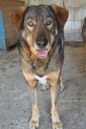Ouzo est arrivé au refuge en 2018 et se montrait très fuyant mais aussi très gourmand. Au fil des mois, il était content de nous voir, et attendait son tour de visite pour avoir des friandises mais pas de caresses. Il est devenu le chouchou de nombreux bénévoles, de par la joie qu'il exprimait en notre présence malgré le fait qu'on ne puisse pas le toucher. Il gardait ses distances à chaque tentative de contact.