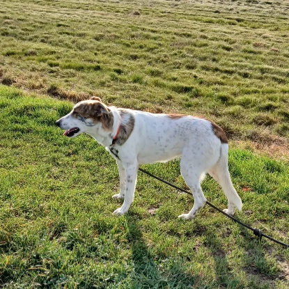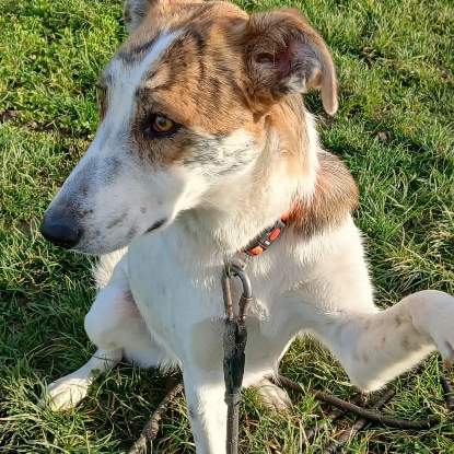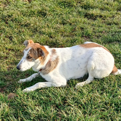 Très bonne chienne de famille, elle mérite un foyer bienveillant qui continuera son éducation, elle aura aussi besoin de côtoyer des congénères, avec qui elle aime bien jouer !