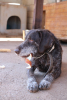 Elle partage actuellement son chenil avec deux mâles, avec qui elle s’entend bien. Un test femelles sera possible en cas de demande d'adoption.