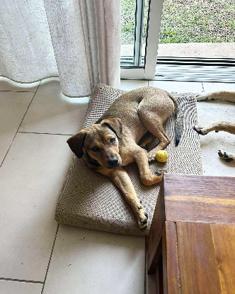 Très bonne gardienne, elle a déjà compris son rôle dans la maison : prévenir quand quelqu’un approche du portail et chasser les intrus (chats, tangues, lézards inclus).