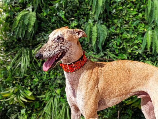 SON CARACTERE : Muller est un galgo très gentil, sans crainte. Malgré les marques bien visibles d’un passé qu’on ose à peine imaginer, il ne garde aucune rancune envers l’homme. Il est toujours très content lorsqu’on le caresse, et peu importe qu’il connaisse ou non la personne. Il apprécie beaucoup le contact, on ne l’a jamais vu nerveux ou anxieux. Il s’entend très bien avec tous les chiens, il est sociable et soumis.
