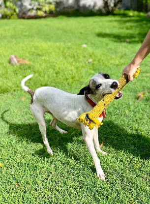 J’aime aussi jouer, surtout à tirer à la corde (bon… je rends un peu moins le jouet ?), et j’adore suivre les personnes que j’aime partout où elles vont ??