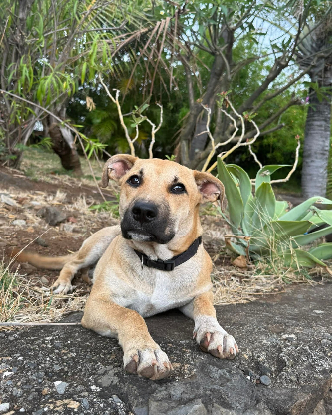 C’est Hugo @hugrosac qui l’a trouvé errant et mal en point sur le parking du Burger King de Saint-Leu . Il était accompagné d’une autre chienne lui ressemblant, probablement sa sœur, qui a directement été adoptée (voir dernière photo)