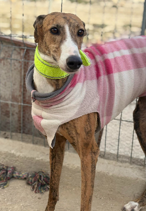 Phoebe est une galga lumineuse, douce et profondément attachante. Elle n’attend qu’une main aimante pour écrire le nouveau chapitre de sa vie — celui où elle sera enfin aimée et respectée pour toujours.