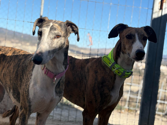 Phoebe est une superbe galga née le 3 mai 2019. Élégante, fine et délicate, elle pèse 25 kg pour 65 cm au garrot. Arrivée au refuge en novembre 2025, elle a été cédée par un chasseur en même temps que Mónica et Rachel. Parmi les trois, Phoebe est celle qui s’est immédiatement distinguée par son caractère lumineux et sa recherche d’affection.