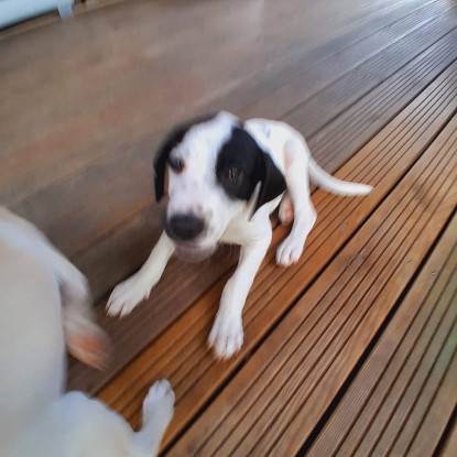 Je m’entends très bien avec les chiens ? : je vis avec ma sœur et avec une grande golden. Quand elle m’aboie dessus pour jouer, je lui réponds aussitôt pour continuer la partie !