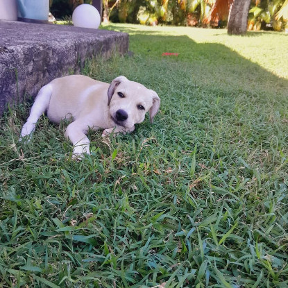 Je m’entends très bien avec les chiens ? : je vis avec ma sœur et avec une grande golden. Quand elle m’aboie dessus pour jouer, je lui réponds aussitôt pour continuer la partie !