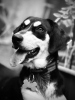 USKA, qui est un chien Femelle ''Croisée Lévrier'', stérilisée, vaccinée, identifiée, Couleur Noir et Blanc.