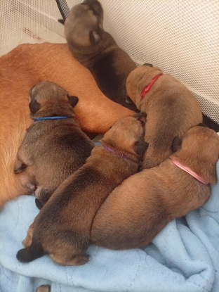 La maman Renarouge est une croisée beauceron de 5 ans et le papa Ganja un malinois / berger belge de 3 ans.