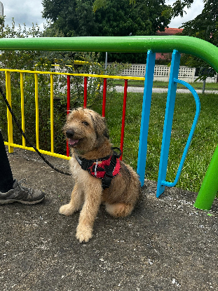 Lagos est un amour de chiot croisé griffon. Il est né le 01/06/25 et a donc bientôt 7 mois. Il fait 16 kilos et il va encore grandir, il sera un chien de taille moyenne, sans doute autour de 18-20 kilos. Avant son arrivée au refuge DOGGY OASIS INTERNARNATIONAL, il a été récupéré par la fourrière après avoir été déposé chez un vétérinaire.