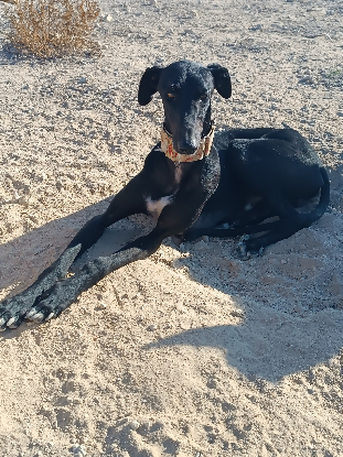 Pinillo est un jeune galgo mâle né le 12 décembre 2022. Il pèse environ 24 à 25 kg et mesure 68 cm au garrot. Il est vacciné et sera stérilisé le 15 janvier 2026, ce qui lui permettra de voyager à partir du 25 janvier 2026. Les premiers examens vétérinaires confirment qu’il est en bonne santé. Les résultats complets concernant la leishmaniose sont en attente, mais les analyses déjà réalisées à l’hôpital sont rassurantes. Il lui manque un petit morceau sur le côté d’une oreille, un détail qui raconte son passé sans rien enlever à sa beauté.