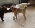 Olaf s’entend très bien avec les autres chiens. Il est bien codé, ne recherche jamais le conflit et sait s’éloigner calmement si nécessaire. Au refuge, il s’entendait déjà très bien avec les chiens de son box.