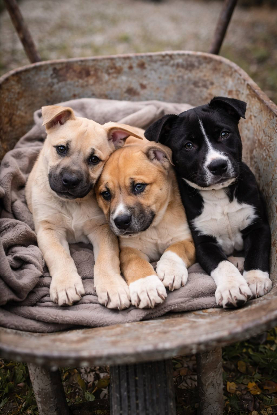 3 chiots, dont 2 femelles beige et 1 mâle noir et blanc. 12 semaines.