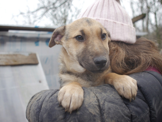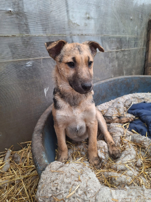 Effarouché suite à un passage difficile à l'équarrissage, Yolan a bien évolué et est désormais un amour de chiot qui attend sa famille.