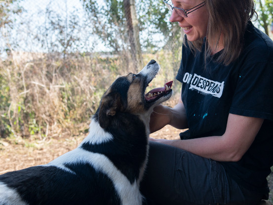 Eliza apprécie la compagnie des humains et des autres chiens. Lors de notre passage chez Lili, elle est venue spontanément vers nous pour recevoir des câlins.