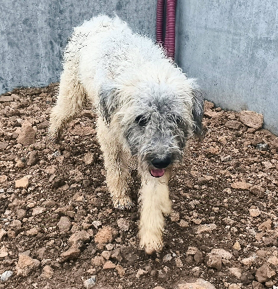 L’histoire de Mosby est profondément bouleversante. Un appel nous a alertés en plein mois de juin, sous plus de 40 degrés : un chien gisait au sol, attaché par les quatre pattes, abandonné à la terre et aux broussailles. Il n’y avait pas une minute à perdre.