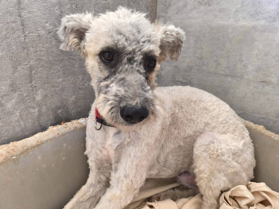 Il sera placé stérilisé, vacciné, identifié et déparasité. Les tests aux maladies méditerranéennes sont négatifs mais le test de la leishmaniose sera refait en cas de demande d'adoption et devra ensuite être refait une fois par an, la maladie étant endémique en Espagne et pouvant mettre plusieurs années à être détectable.