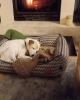 Elle fait beaucoup de petites siestes. Elle a de la cataracte mais n'a pas de difficulté de déplacement grâce à son flair.