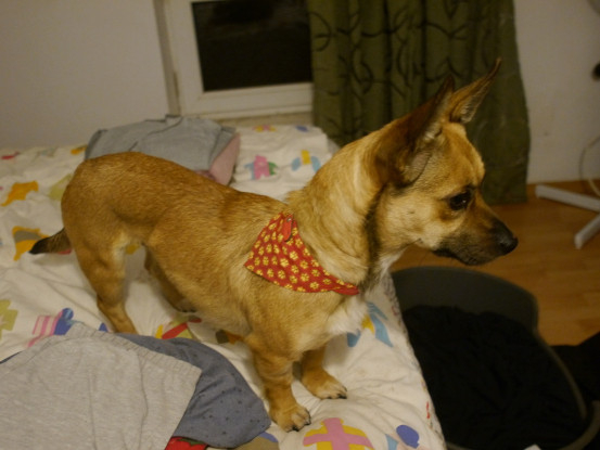 Jodie est une petite chienne douce et sociable. Les bénévoles ont pu passer du temps avec elle lors de leur passage au refuge. Elle se laisse prendre dans les bras, elle a dormi dans le lit au chaud, elle est en demande d'attention avec les humains. Elle s'entend avec ses congénères.