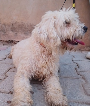 Histoire: Pico est un magnifique croisé bichon de grande taille. Il a été trouvé dans la rue infesté de puces et le pelage tout emmêlé.