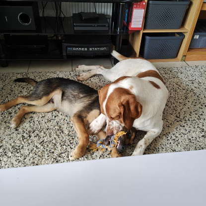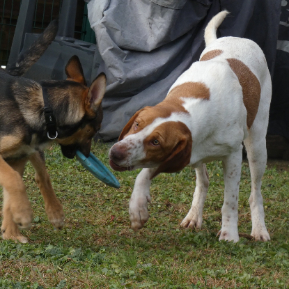 Encore un peu brute dans ses gestes (un peu de maladresse de jeune chien ?)