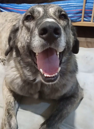 C’est une chienne souriante, pleine de gentillesse et de gratitude, qui adore la compagnie des autres chiens.