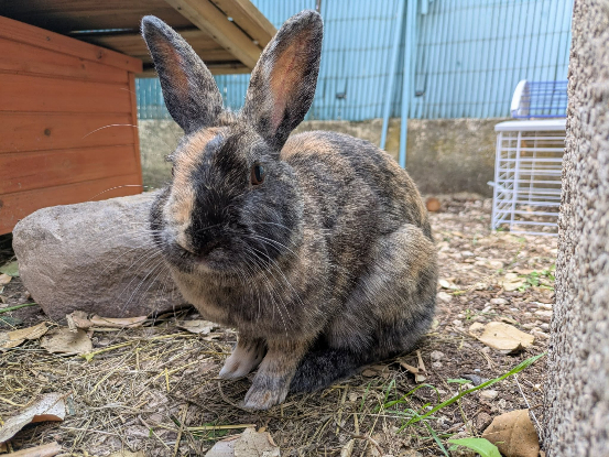Elle vit actuellement en totale liberté. Elle a besoin d’être en confiance pour se laisser caresser. Elle aime être cachée, il lui faudra donc plusieurs cachettes à différents endroits.