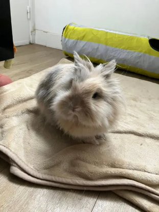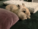 « Salutation à toustes, je suis Dixit et je suis contente de vous rencontrer ! Je suis une lapine presque parfaite. J’aime grignoter du bois, monter sur vos genoux quand vous êtes au sol pour des papouilles et explorer mon environnement. Aussi, n’oubliez pas de me complimenter, je suis la star de la maison après tout ! Avec mon beau pelage beige et gris, je fais fondre tous les cœurs !